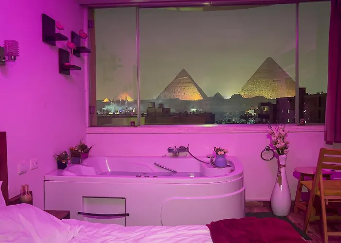 تقع شقة Full Pyramids View With Jacuzzi & Roof Top Access القاهرة بمساحة 75 مترًا مربعًا في منطقة الجيزة في القاهرة، على بُعد 20 دقيقة سيرًا على الأقدام من تمثال أبو الهول بالجيزة، وتضمّ مرافق سبا مثل جاكوزي والحوض الساخن.